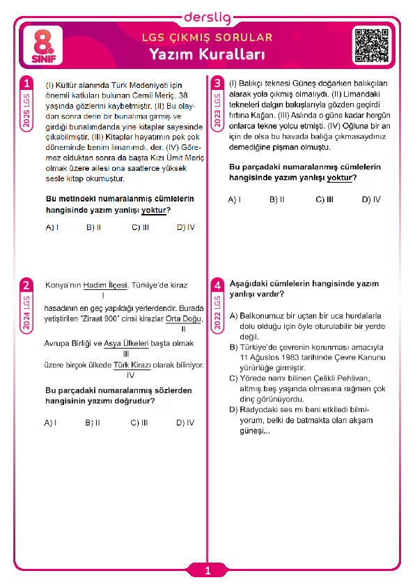 Yazım Kuralları Etkinlikli Çalışma Kağıdı