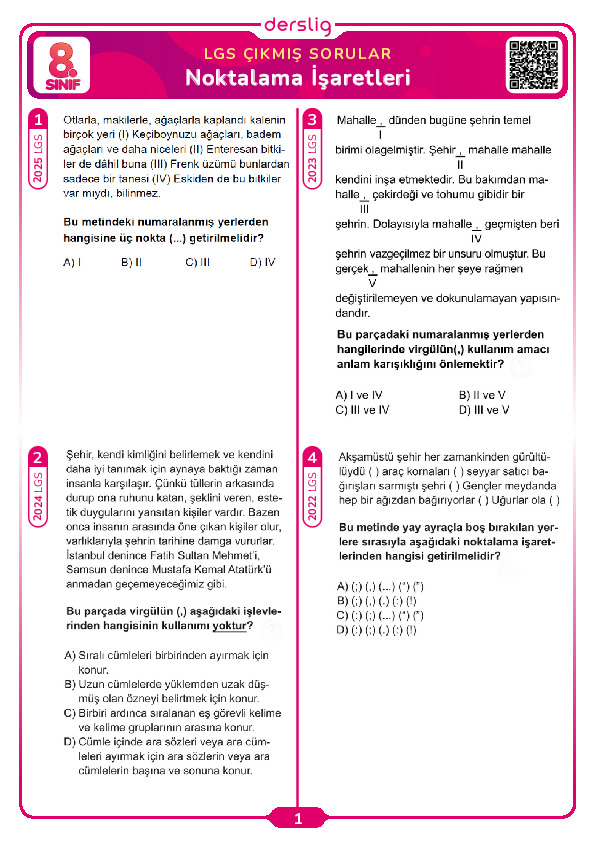 Noktalama İşaretleri Etkinlikli Çalışma Kağıdı