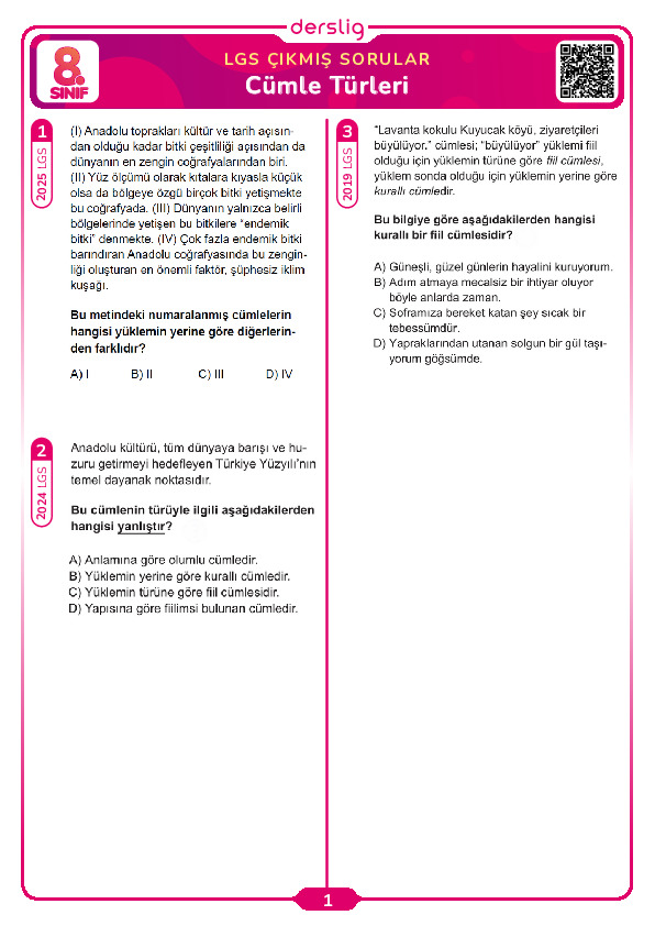 Cümle Türleri-1 (Anlamına Göre Cümleler)