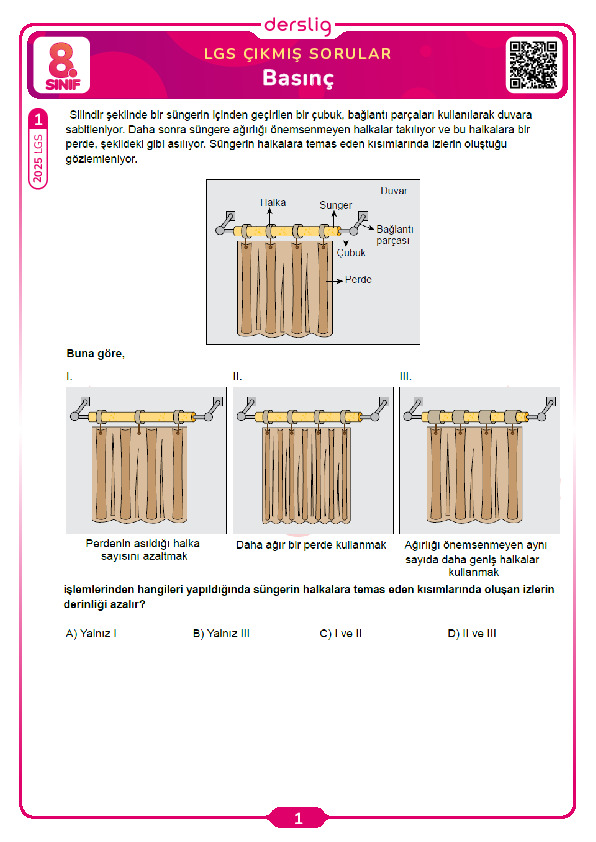 Katı , Sıvı ve Gaz Basıncı Çalışma Kağıdı