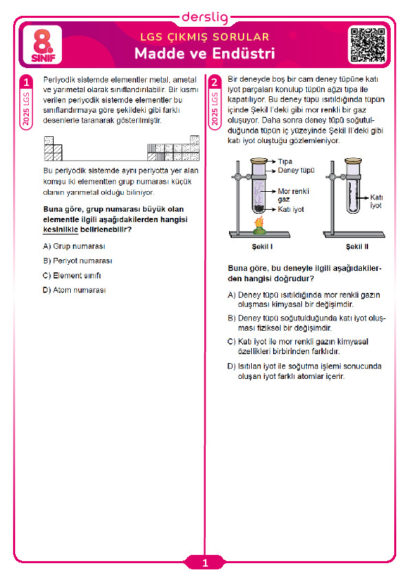 PERİYODİK CETVEL TEST 1