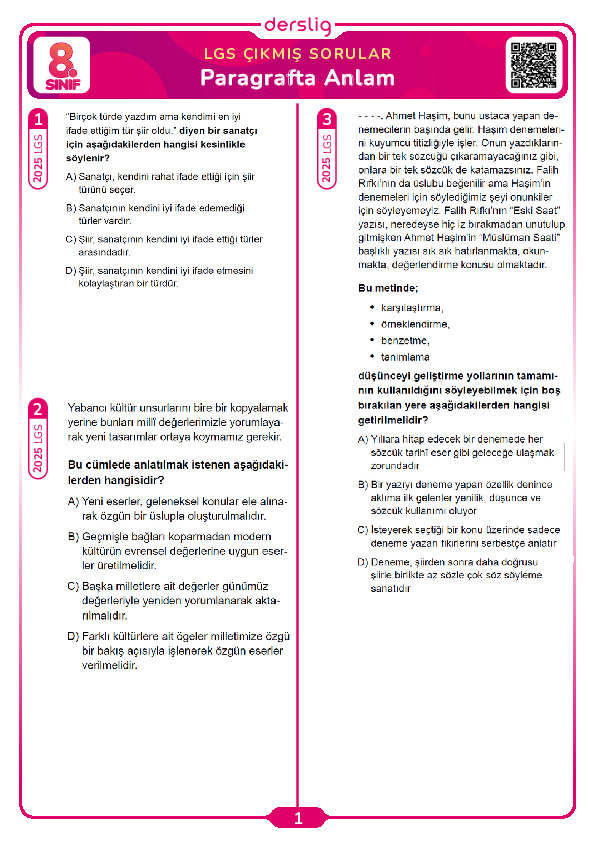 Paragrafta Anlam Etkinlikli Çalışma Kağıdı