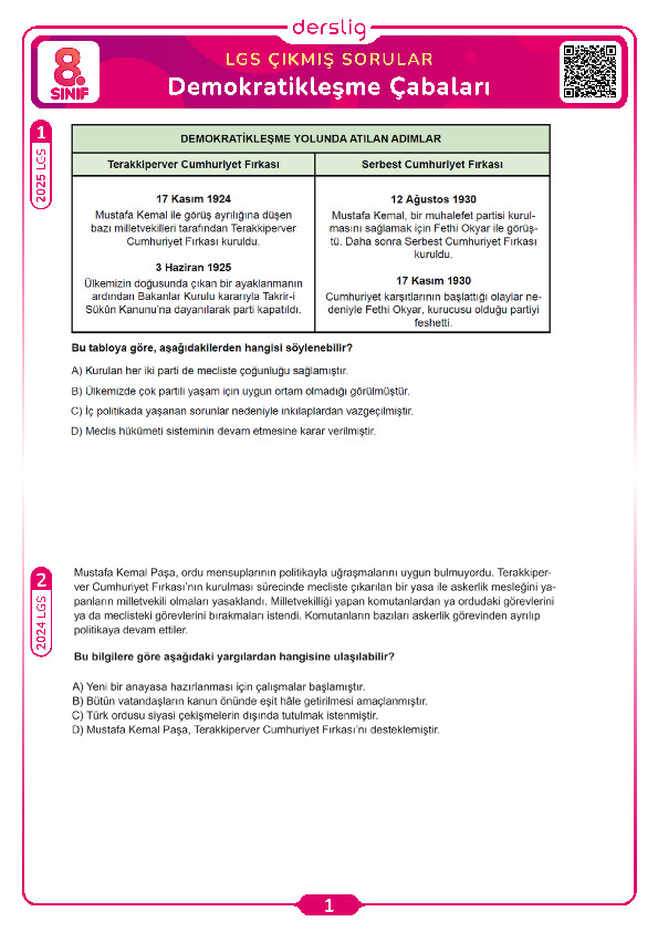 5.Ünite Demokratikleşme Çabaları Ders Notları