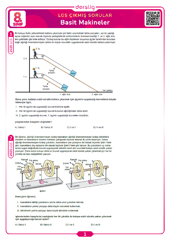 Basit makineler Kaldıraç - Eğik Düzlem - Çıkrık