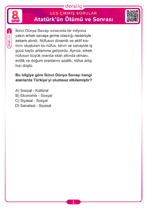 Atatürk'ün Ölümü ve Sonrası - Test 1