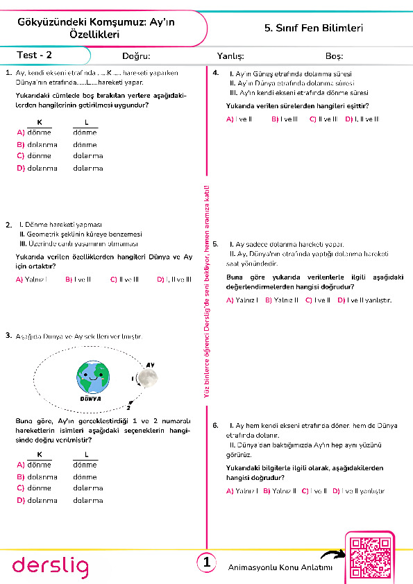 Test 4 - Güneş Dünya ve Ayın Hareketleri