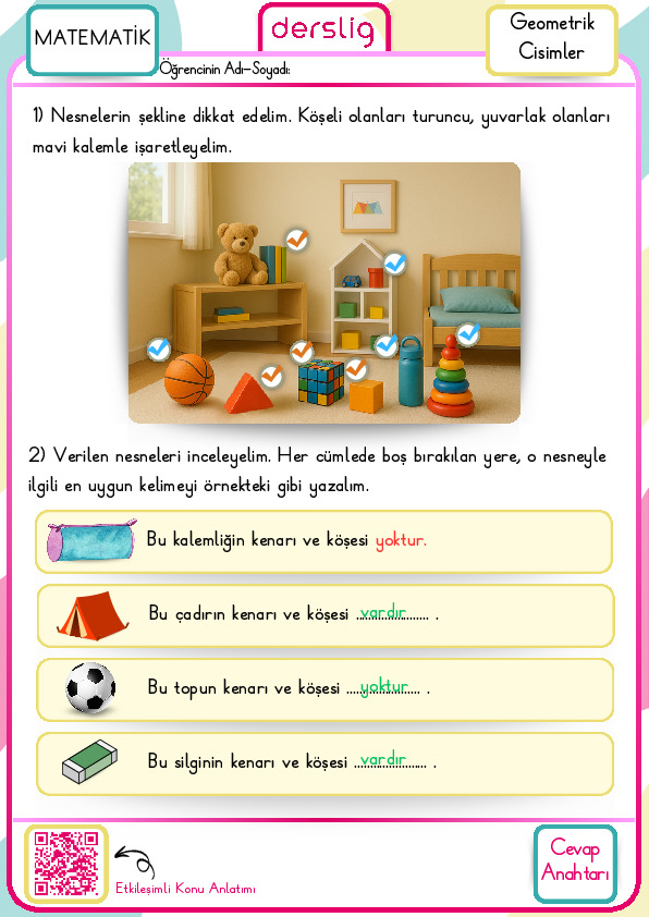 Geometrik Şekil Modelleri Cevap Anahtarı