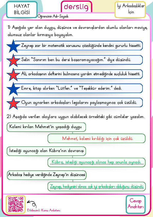 2. Sınıf Arkadaşlık İlişkilerimiz Cevap Anahtarı