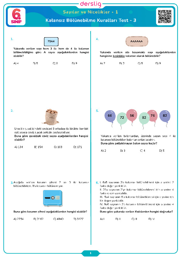 Kalansız Bölünebilme Kuralları Test- 4 (Yeni Nesil)