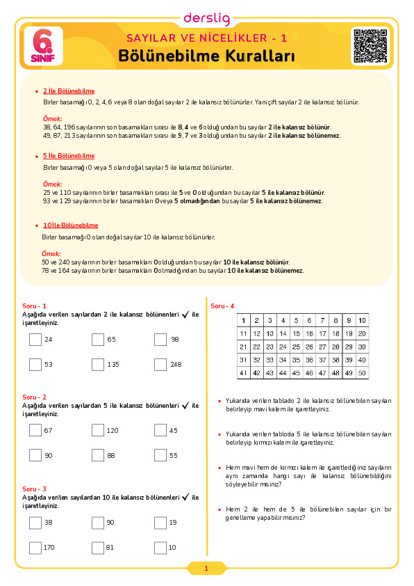 Kalansız Bölünebilme Kuralları Test-1