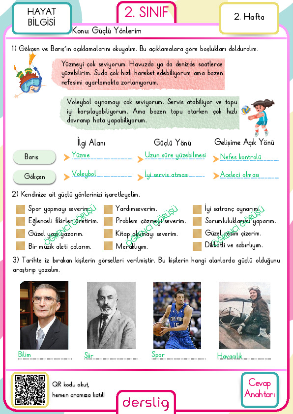 2. Sınıf 1. Hafta cevap anahtarı