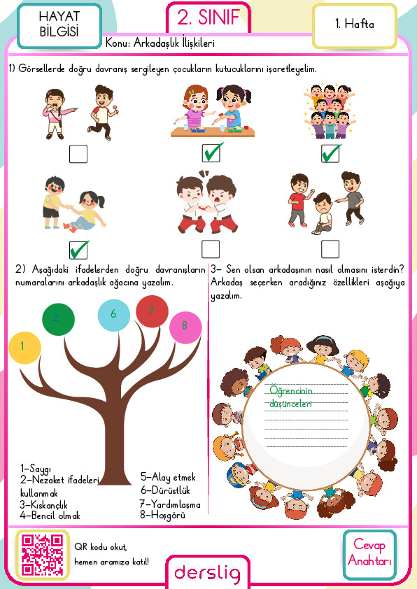 2. Sınıf Arkadaşlık İlişkilerimiz Cevap Anahtarı