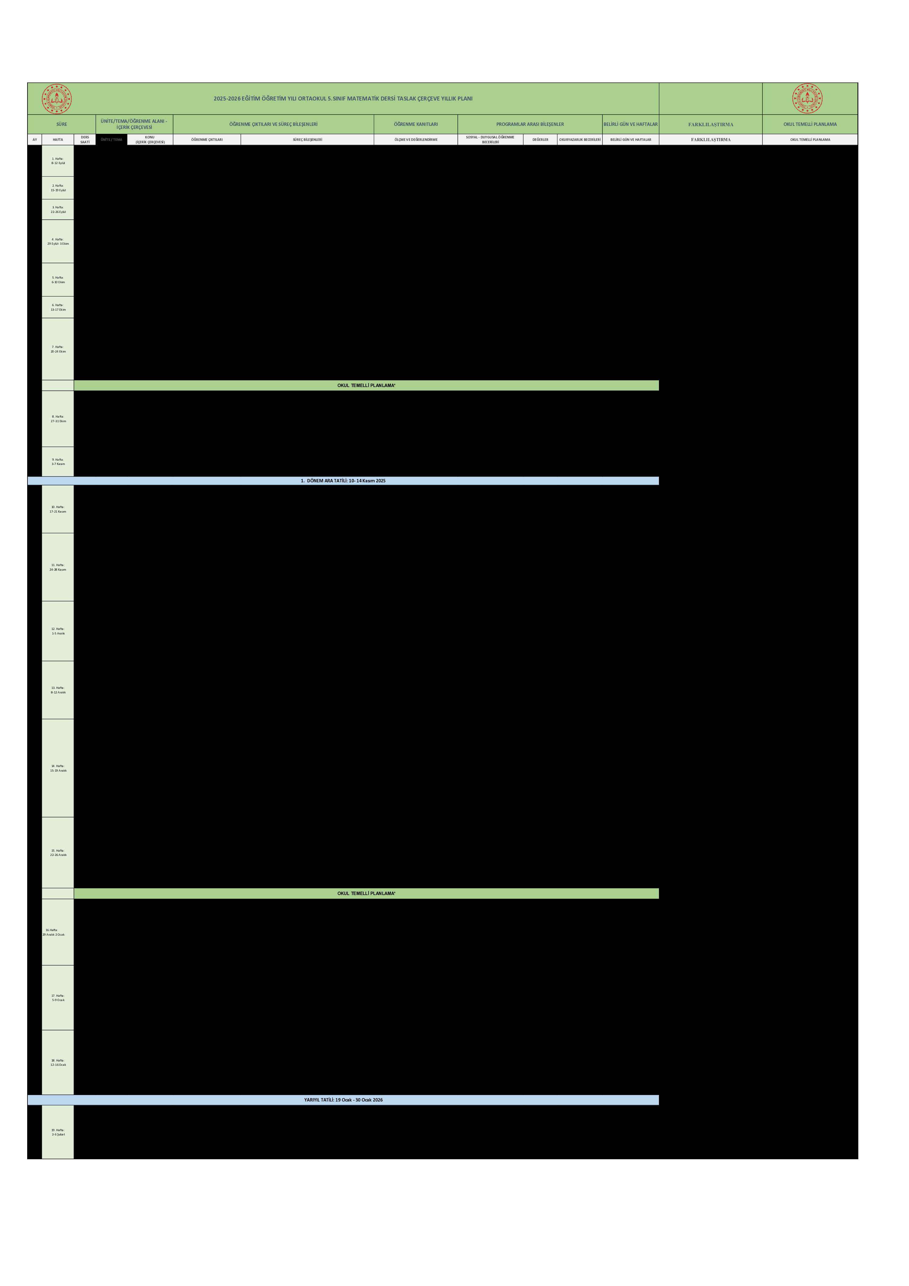 6. Sınıf Matematik Yıllık Plan PDF(2025-2026 Eğitim Yılı)
