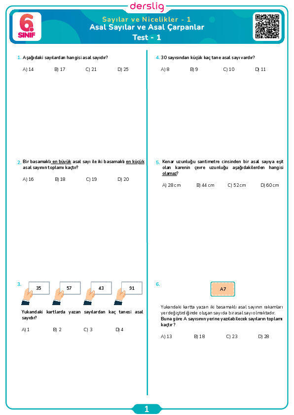 Asal Sayılar ve Asal Çarpanlar Test- 3 (Yeni Nesil)