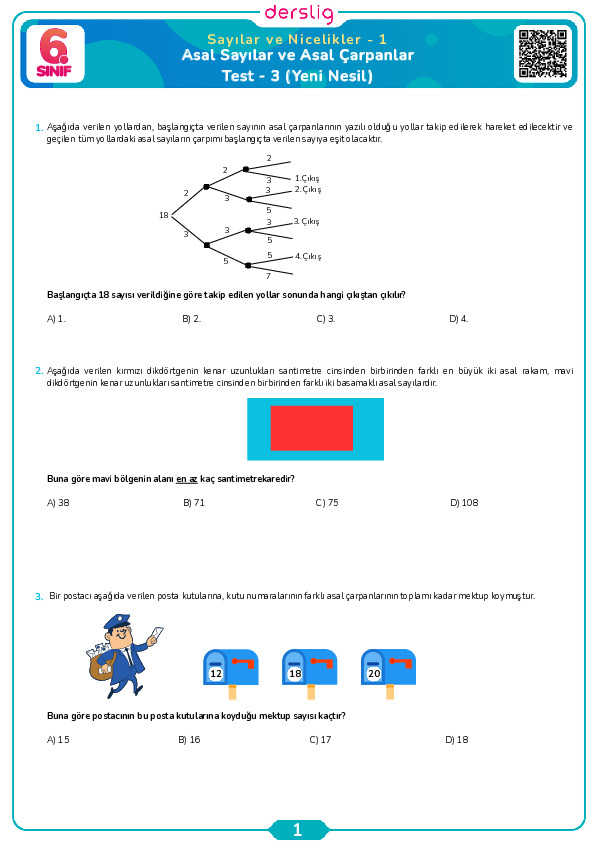 Asal Sayılar ve Asal Çarpanlar Test- 1