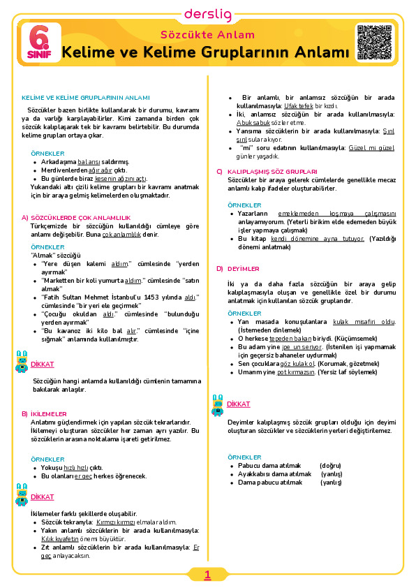 Kelime ve Kelime Gruplarının Anlamı Test- 3