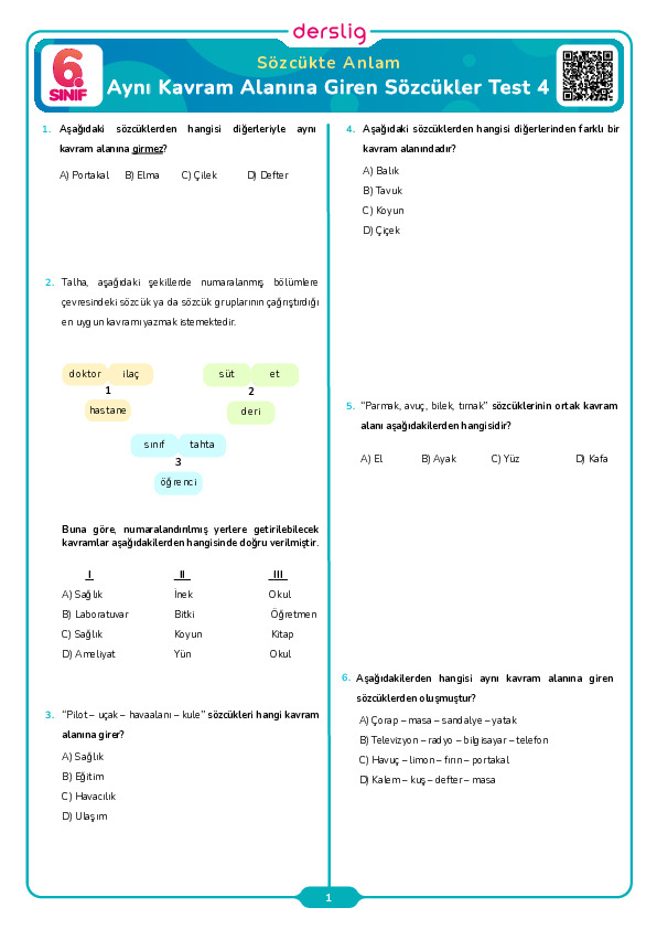 Sözcükler Arası Anlam İlişkileri Test- 2