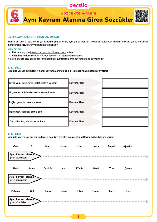 Aynı Kavram Alanına Giren Sözcükler Test- 4