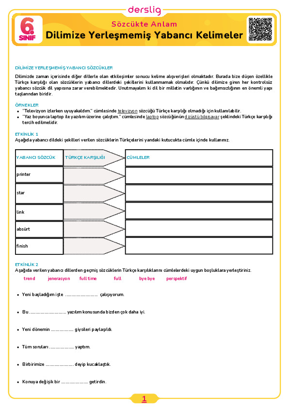 Dilimize Yerleşmemiş Yabancı Kelimeler Test- 5