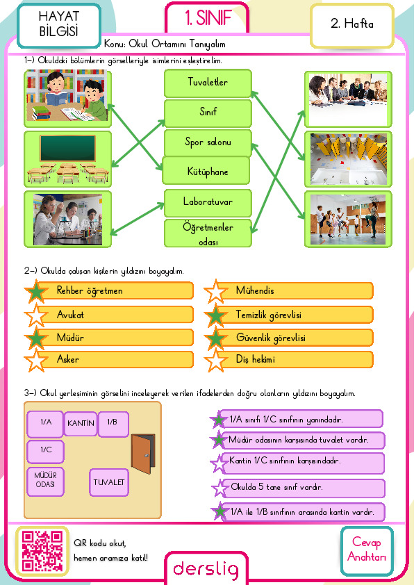 1. sınıf 1. hafta ödevi cevap anahtarı