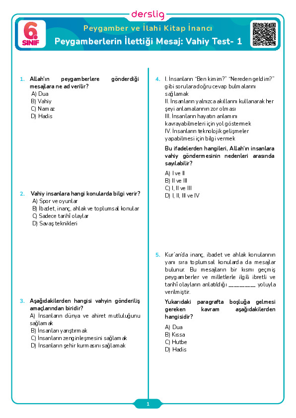 Peygamberlerin İlettiği Mesaj: Vahiy Test- 2