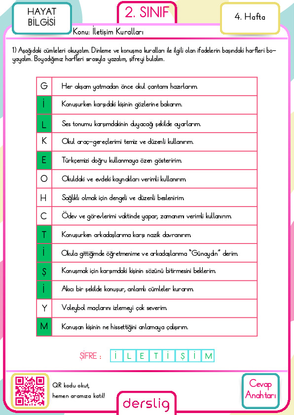 2. Sınıf İyi Arkadaşlıklar İçin Cevap AnahtarI