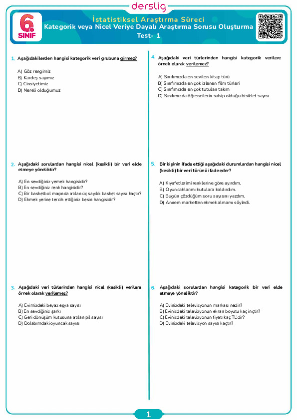 Kategorik veya Nicel Veriye Dayalı Araştırma Sorusu Oluşturma