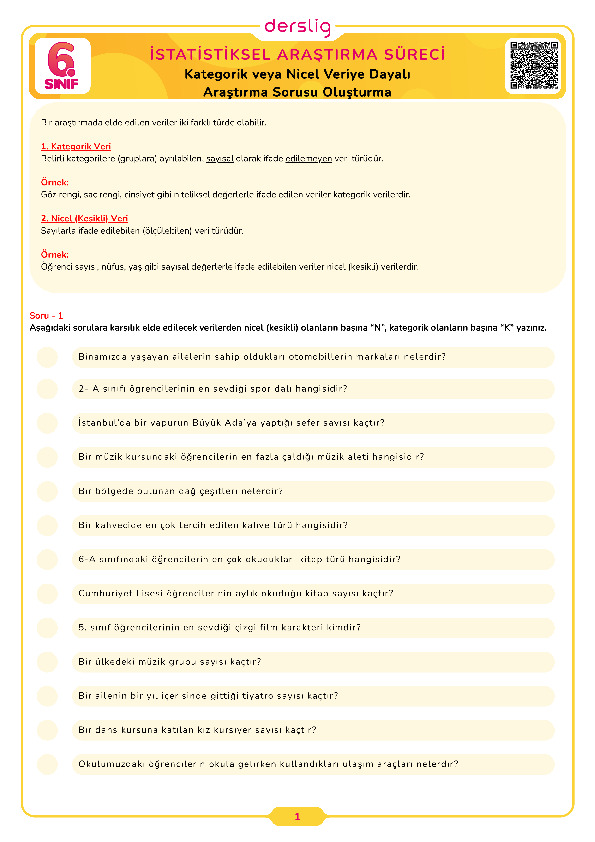 Kategorik veya Nicel Veriye Dayalı Araştırma Sorusu Oluşturma Test- 1