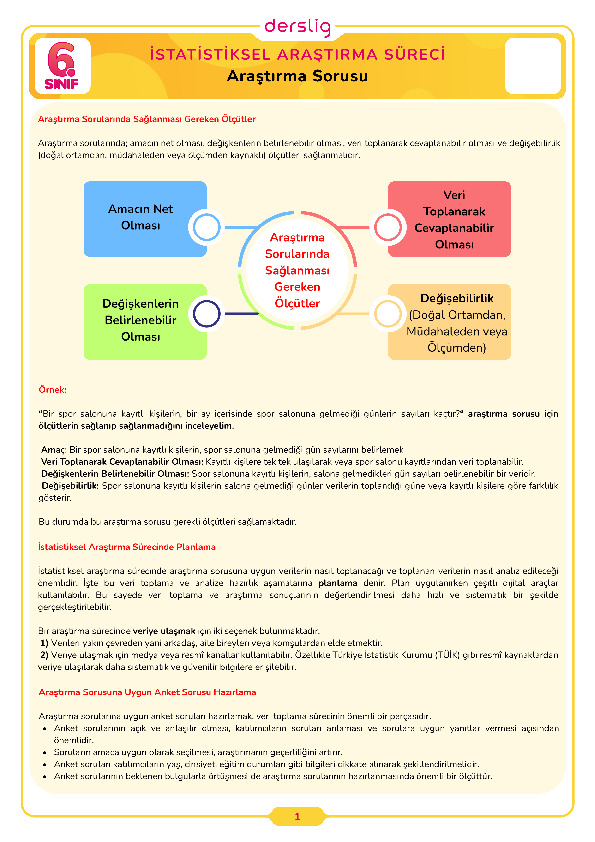 6.Sınıf 2.Tema 1.Konu (Kategorik veya Nicel Veriye Dayalı Araştırma S) Çalışma Kağıdı Cevap Anahtarı