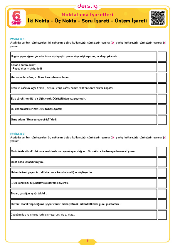 Noktalama İşaretleri Test- 1
