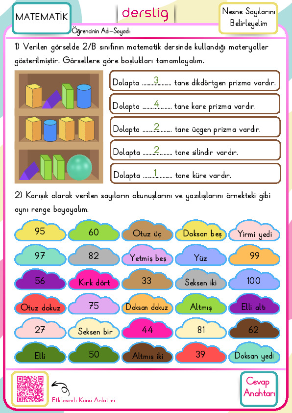 2. Sınıf Nesne Sayısını Tahmin Edelim Cevap Anahtarı