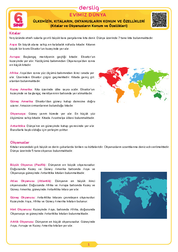 Kıtalar ve Okyanusların Konum ve Özellikleri