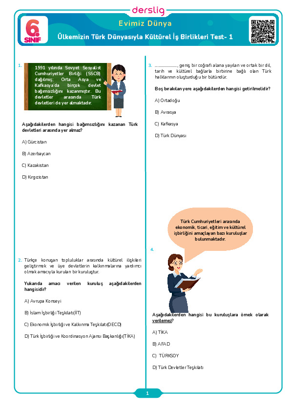 Ülkemizin Türk Dünyasıyla Kültürel İş Birlikleri Test- 2
