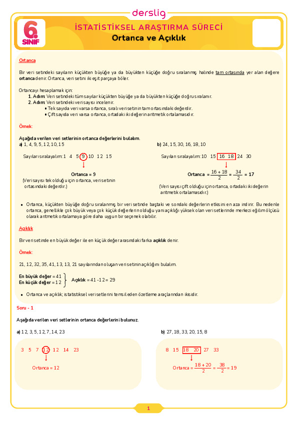 6.Sınıf 2.Tema 1.Konu (Kategorik veya Nicel Veriye Dayalı Araştırma S) Çalışma Kağıdı Cevap Anahtarı