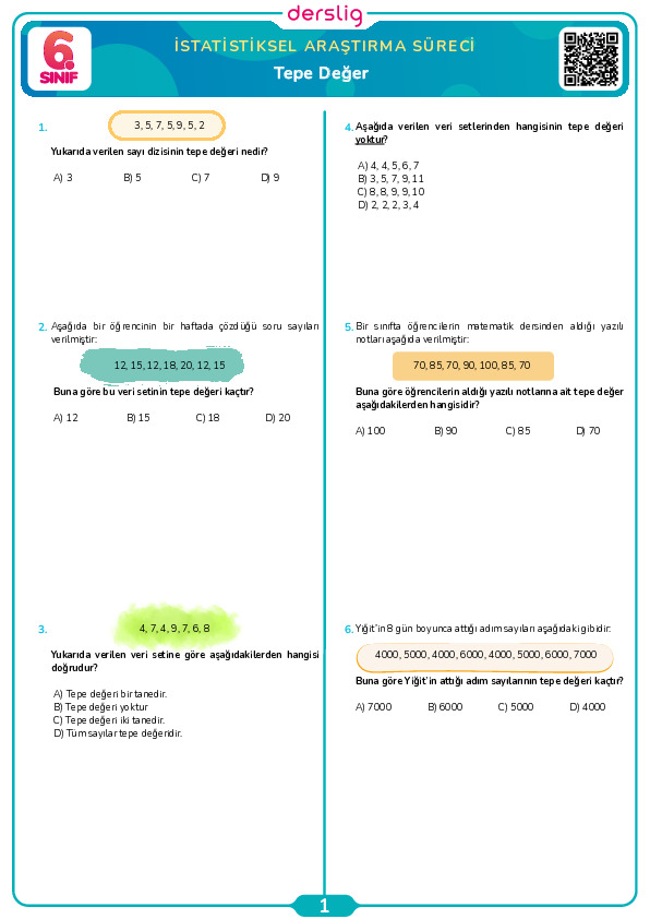 Verileri Sıklık Tablosu ve Sütun Grafiği ile Özetleme Test- 1