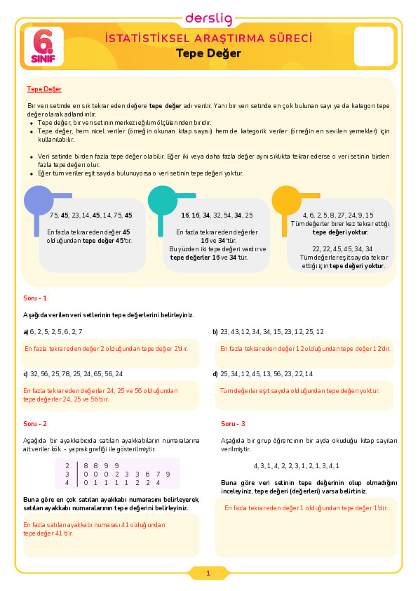 6.Sınıf 2.Tema 1.Konu (Kategorik veya Nicel Veriye Dayalı Araştırma S) Çalışma Kağıdı Cevap Anahtarı