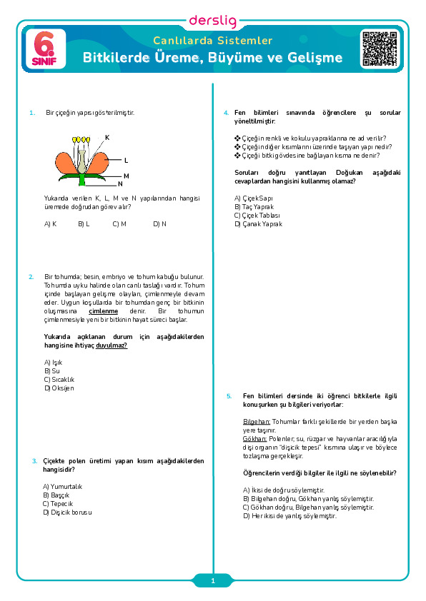 Bitkilerde Üreme, Büyüme ve Gelişme
