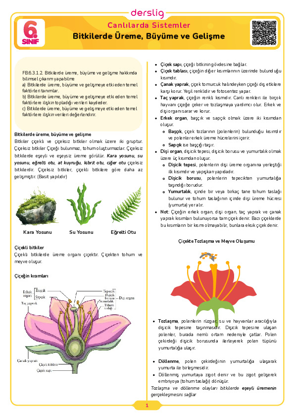 Bitkilerde Üreme, Büyüme ve Gelişme