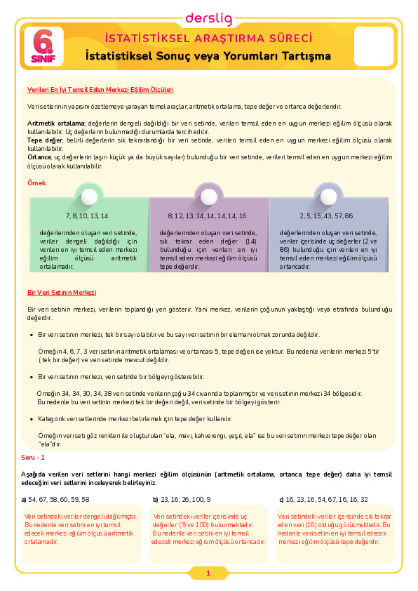 6.Sınıf 2.Tema 1.Konu (Kategorik veya Nicel Veriye Dayalı Araştırma S) Çalışma Kağıdı Cevap Anahtarı