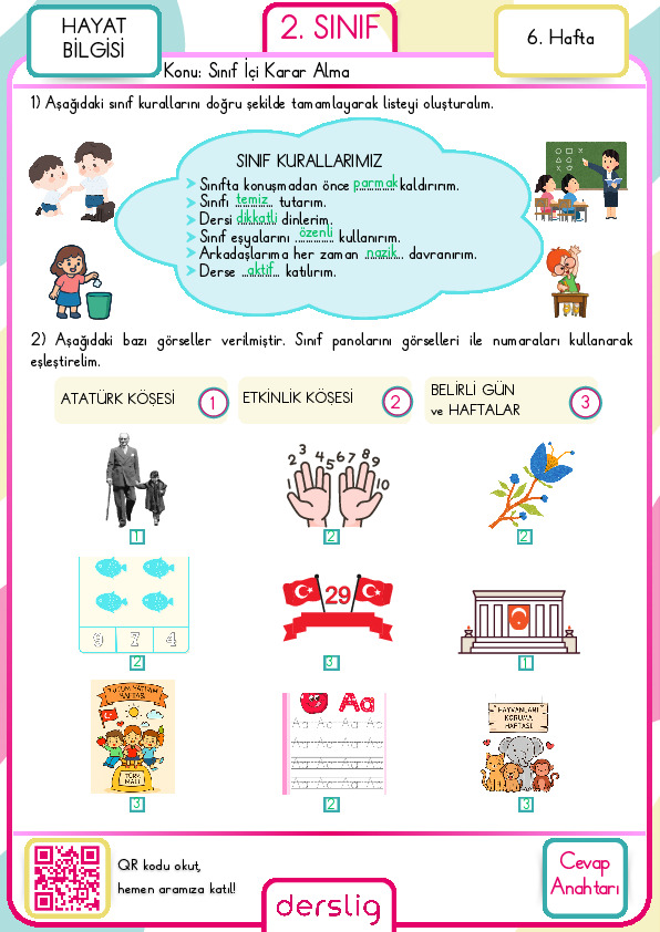 1. sınıf 2. hafta ödevi cevap anahtarı