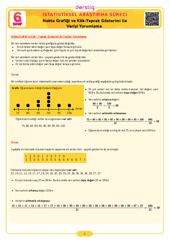 Nokta Grafiği ve Kök-Yaprak Gösterimi ile Veriyi Yorumlama