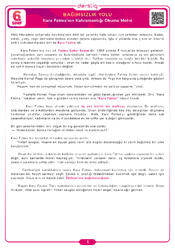 6. Sınıf 2.Tema Bağımsızlık Mücadelesinde Geride Kalanlar Okuma Metni