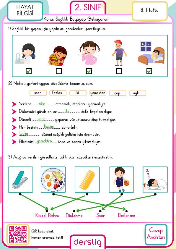2. Sınıf Sağlıklı Büyüyorum Cevap Anahtarı