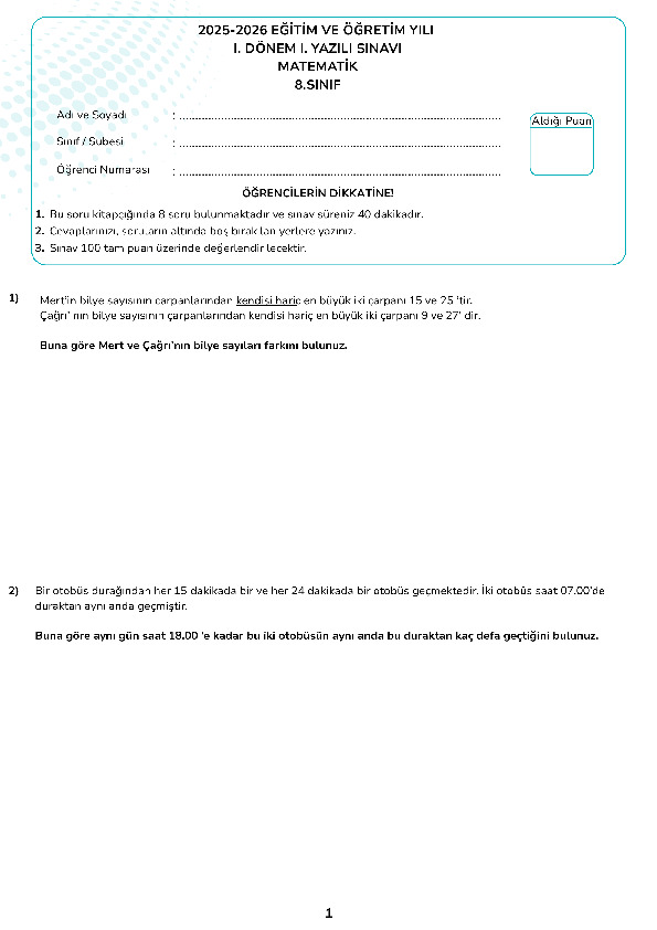 8.Sınıf 1.Dönem 1.Yazılı Hazırlık Fasikülü