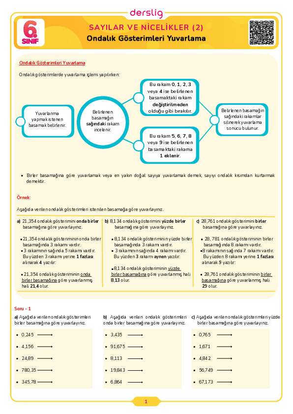 Ondalık Gösterimlerde Basamak Değeri ve Çözümleme