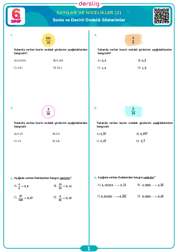 Ondalık Gösterimlerde Basamak Değeri ve Çözümleme