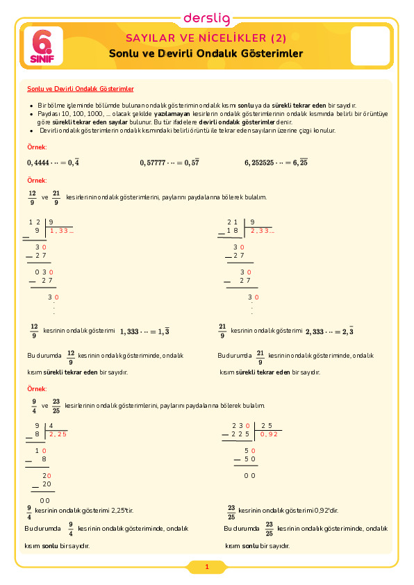 6. Sınıf 1. Tema 1. Konu Özeti(Bir Doğal Sayının Çarpanları ve Katları) Cevap Anahtarı