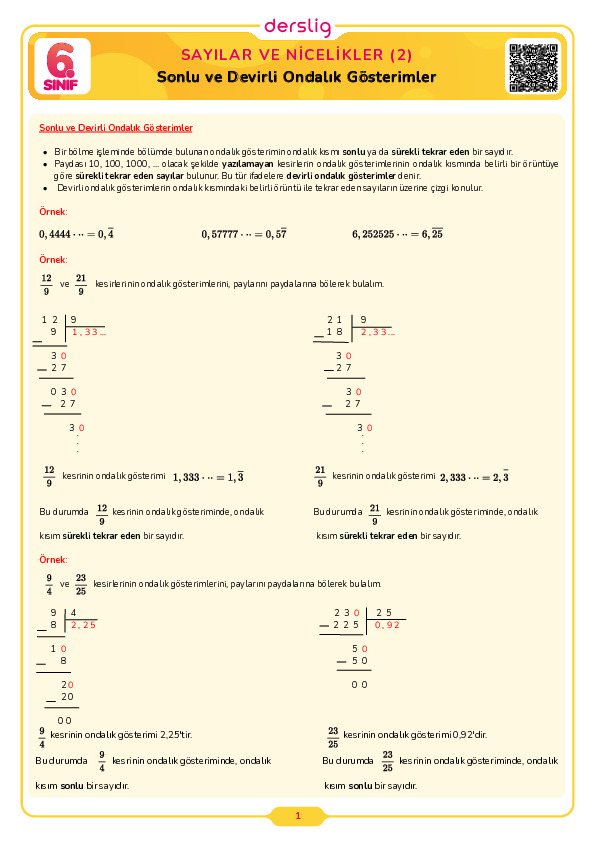 Ondalık Gösterimlerde Basamak Değeri ve Çözümleme