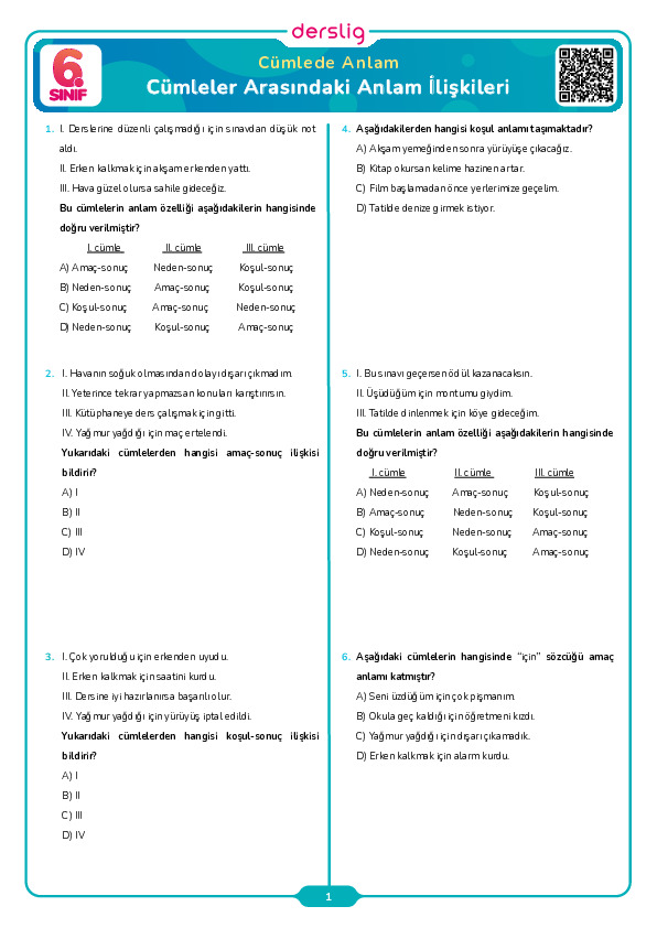 Cümle Oluşturma - Cümle Tamamlama - Cümle Birleştirme