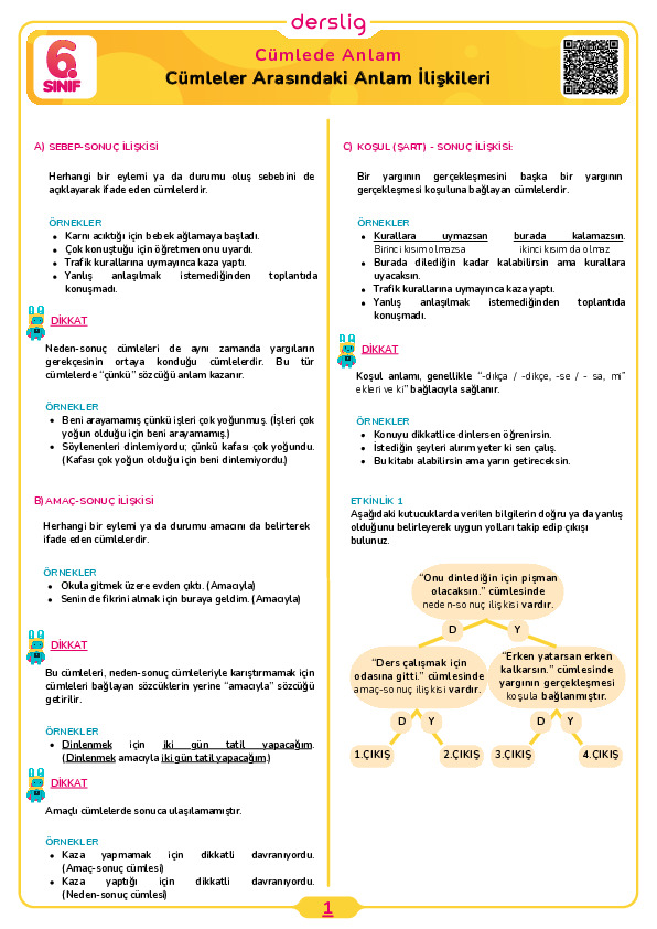 Cümle Oluşturma - Cümle Tamamlama - Cümle Birleştirme